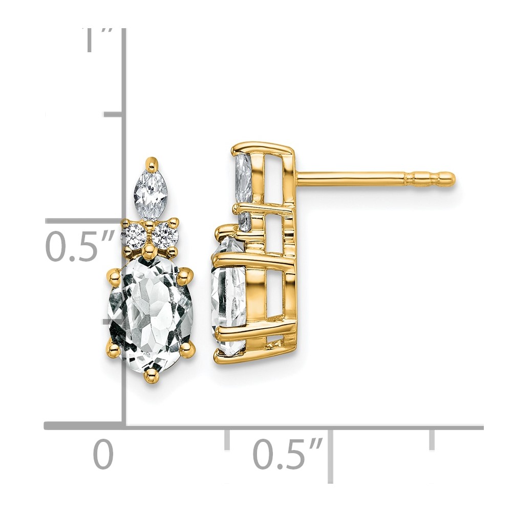 14k Diamond and 7×5 Oval April/White Topaz Post Earrings