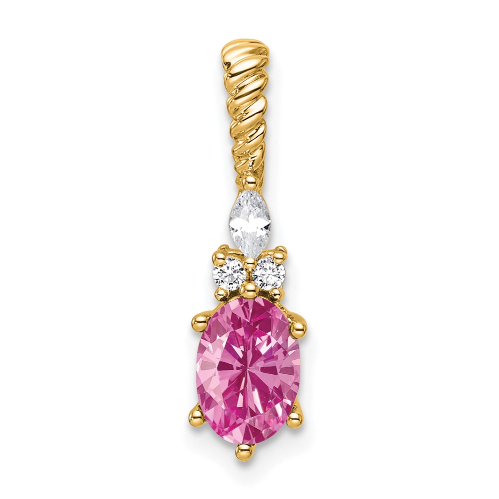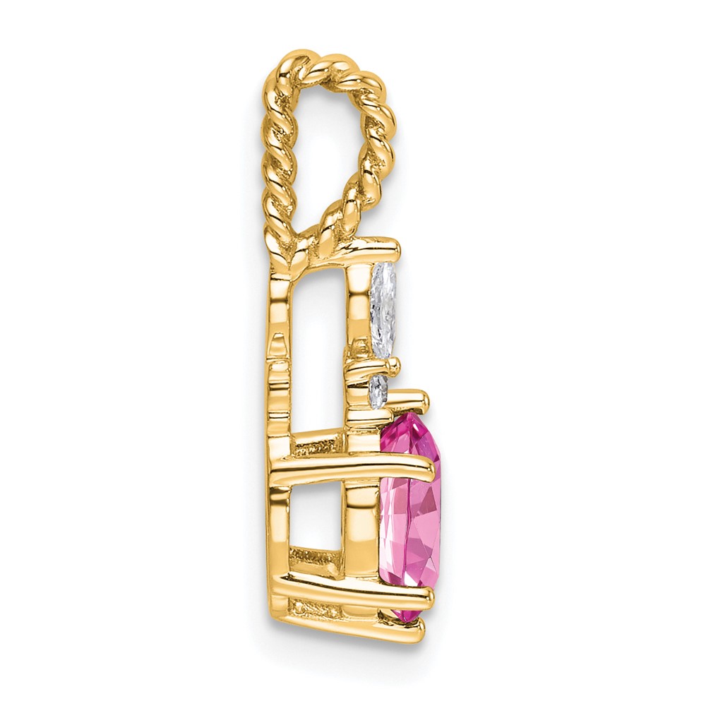 14K Diamond and 7×5 Oval October/Lab Created Pink Sapphire Twisted Chain Slide