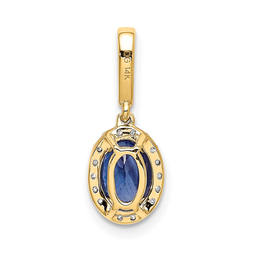 14k Diamond and Oval 1.05 Sapphire Halo Pendant