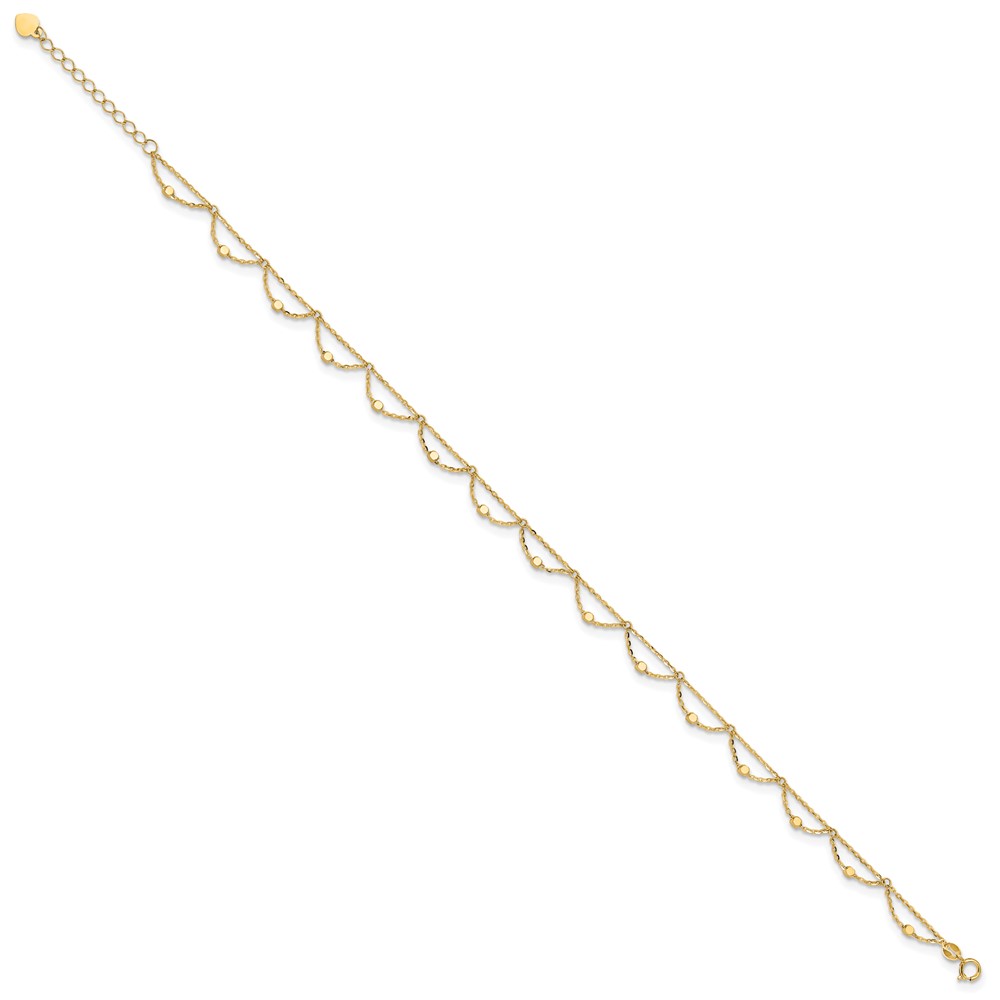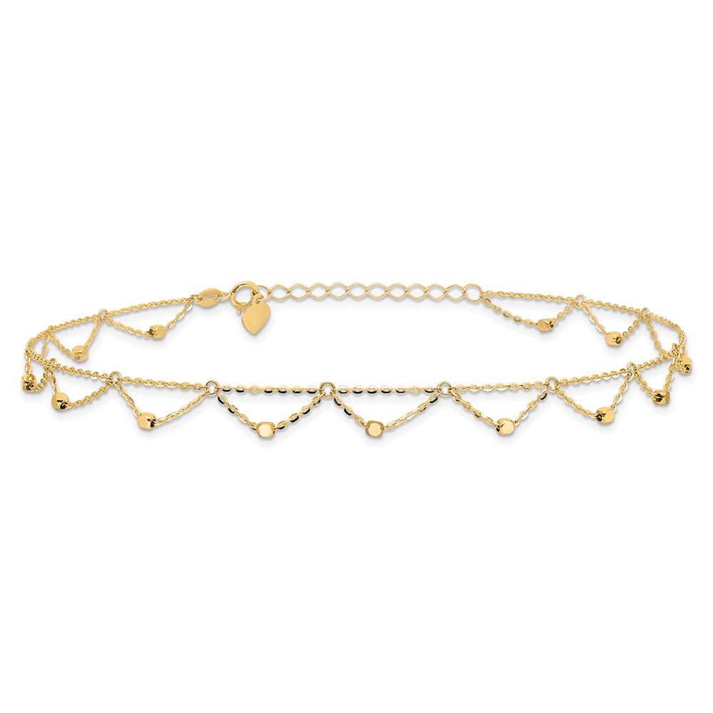 14K Diamond-cut Fancy Beaded Plus 1.Extender – Total 11.Anklet