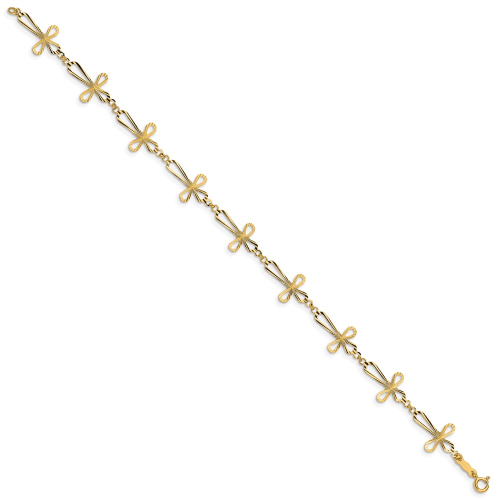 14K Diamond-cut Open Cross 7.5 inch Bracelet