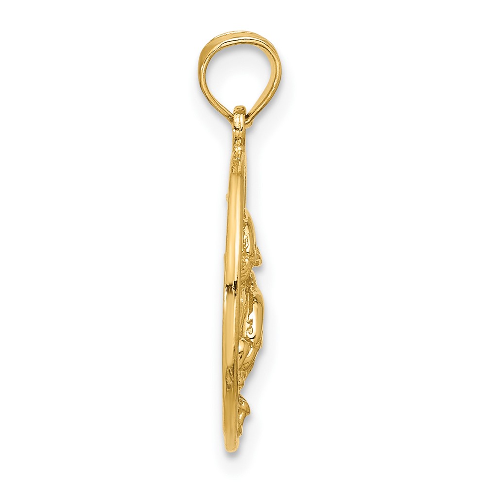 14k Double Dolphin Circle Pendant