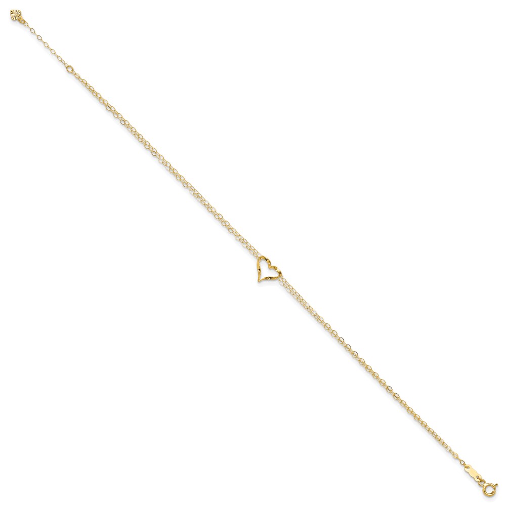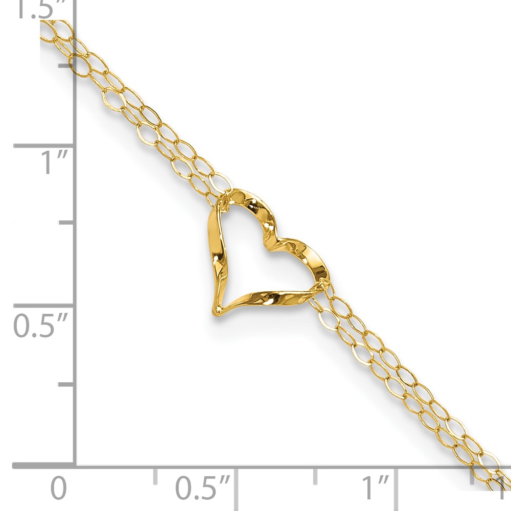 14k Diamond-cut Open Heart and Rope Chain Anklet