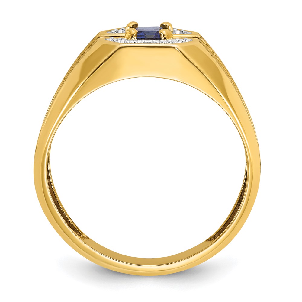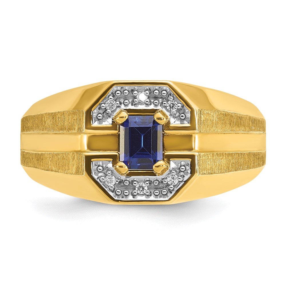 14k IBGoodman Men’s Created Sapphire and 1/20 carat Diamond Satin Complete Ring