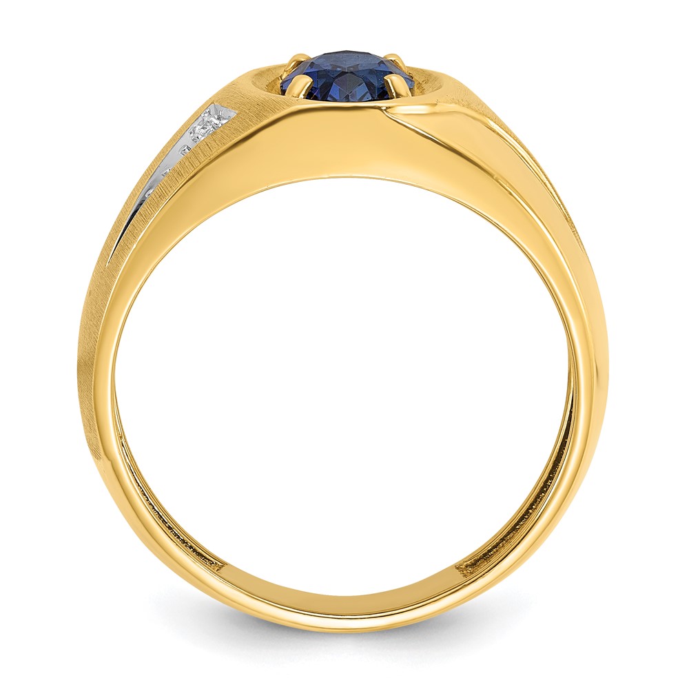 14k IBGoodman Men’s Created Sapphire and Diamond Satin Complete Ring