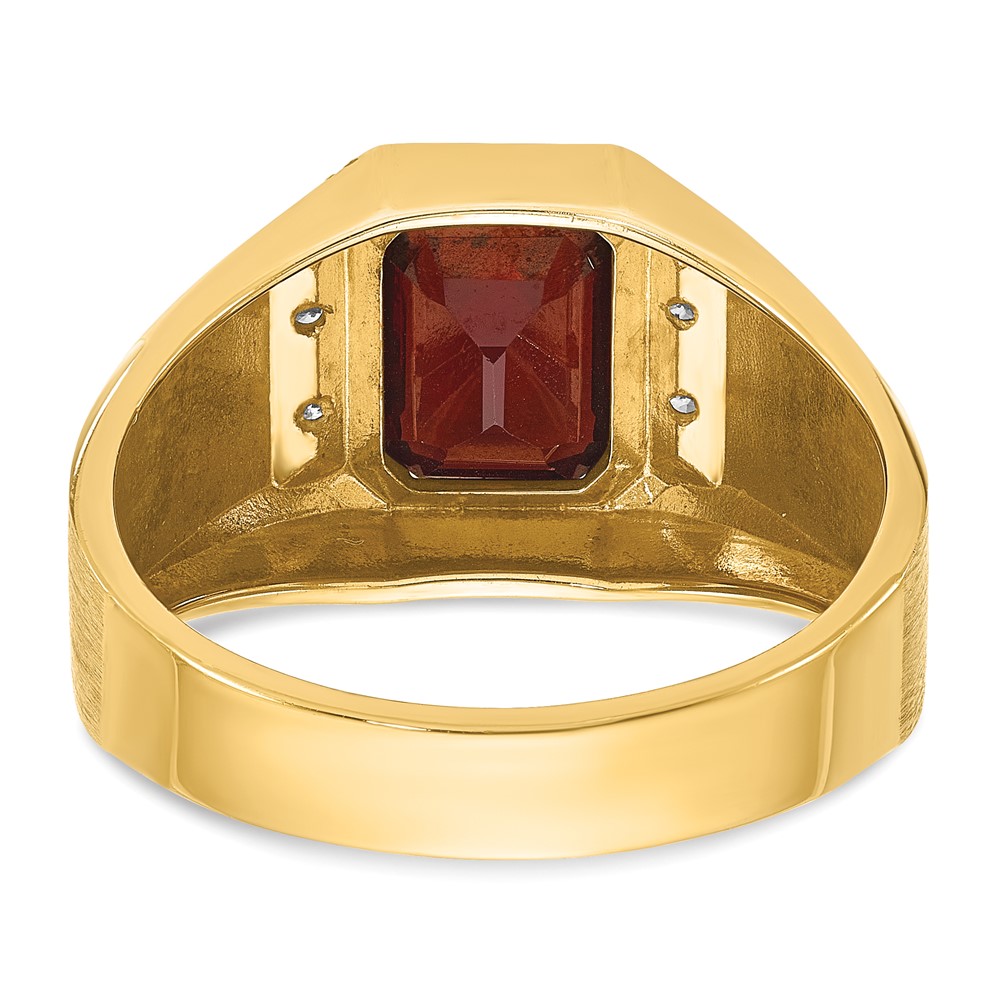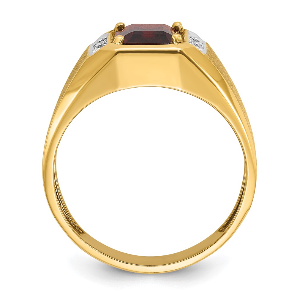 14k IBGoodman Men’s Polished and Satin Created Ruby and 1/20 carat Diamond Complete Ring