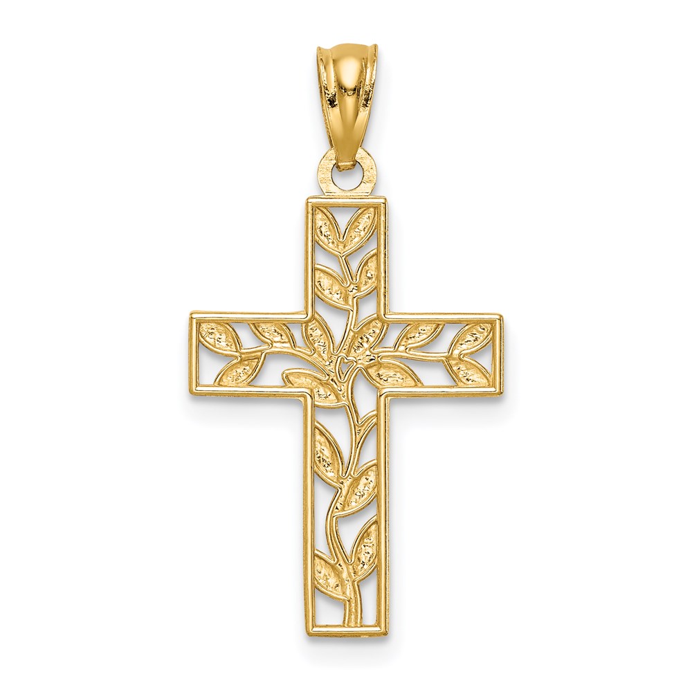 14K Leaf Cross Pendant