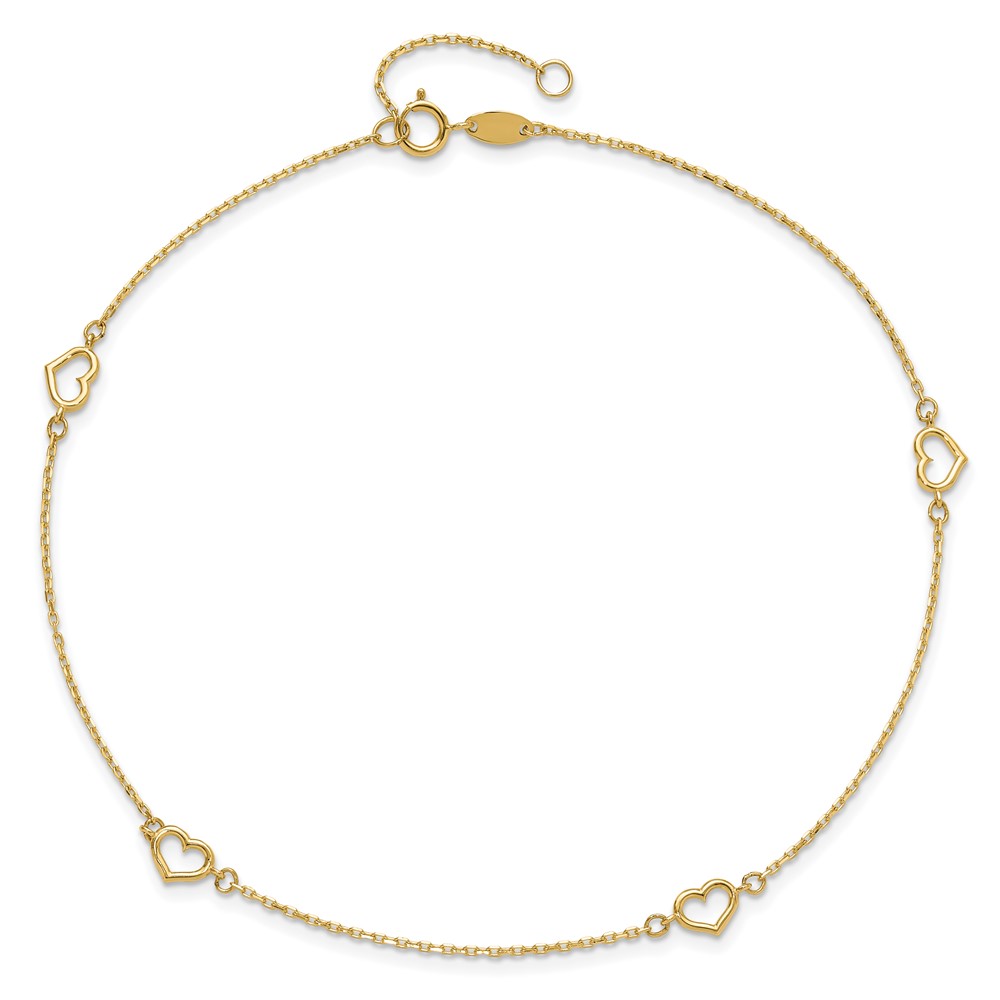 14K Open Hearts 4-Station Plus Extender – Total Anklet