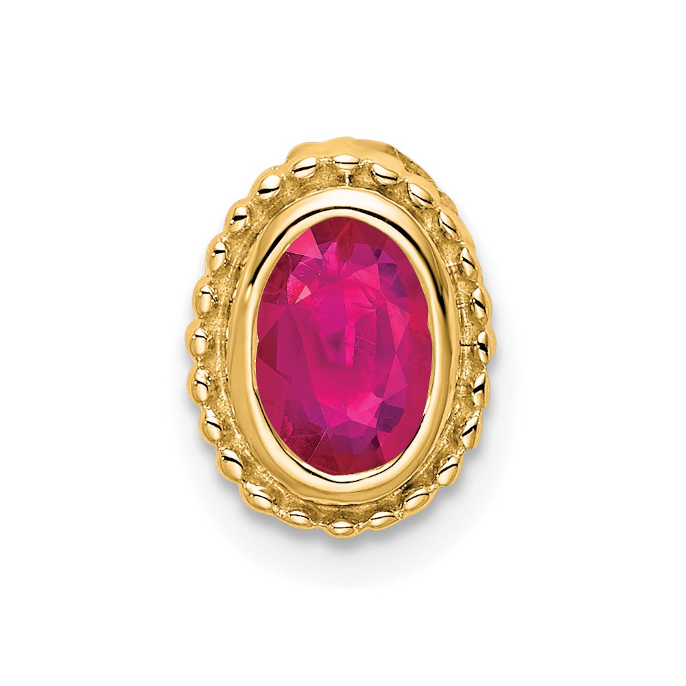14k Oval Ruby Beaded Edge Chain Slide