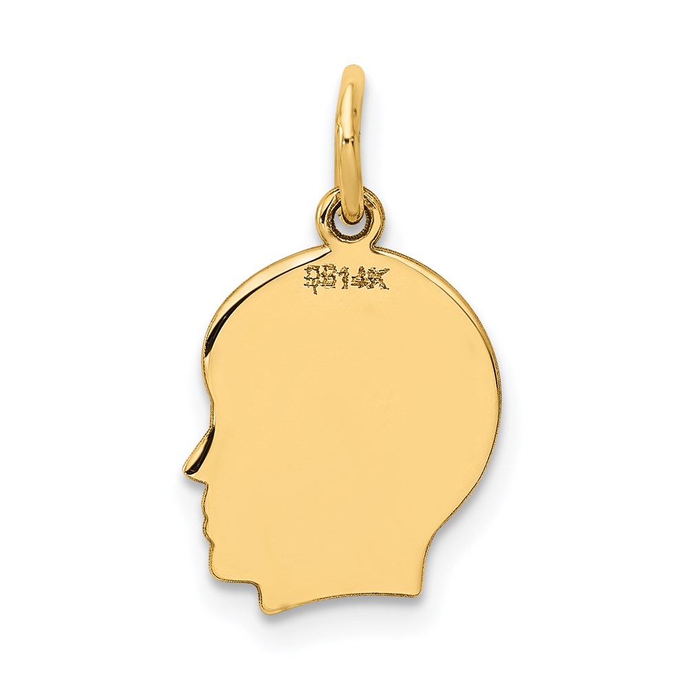 14k Plain Small .013 Gauge Facing Right Engravable Boy Head Charm