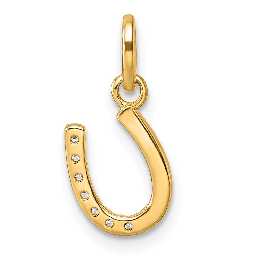 14k Polished 1/15 carat Diamond Beaded Horseshoe Pendant