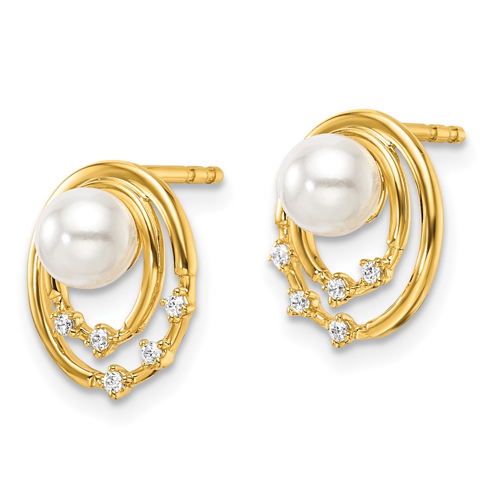 14K Polished 1/20 carat Diamond and White Freshwater Cultured Pearl Ovals Drop Post Earrings
