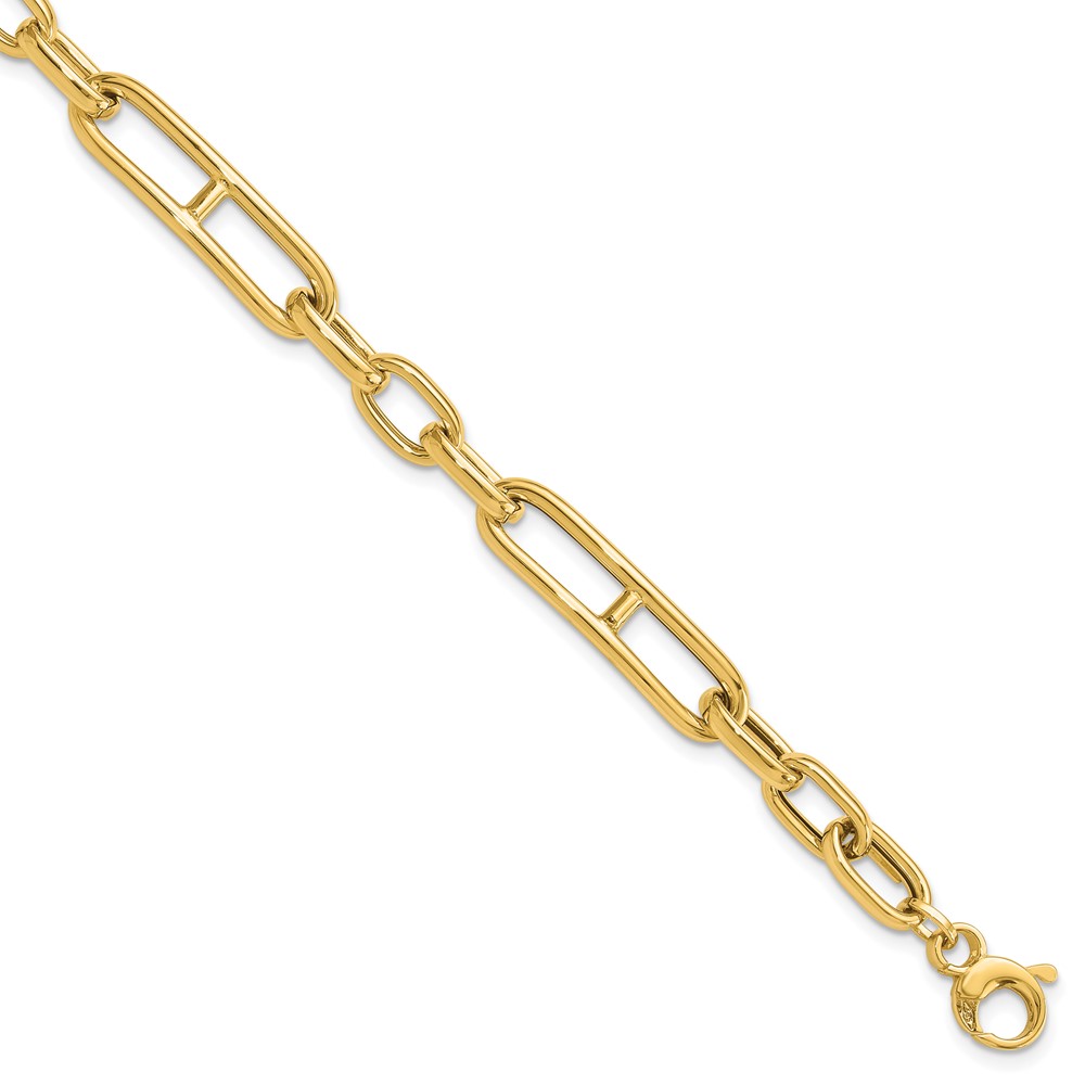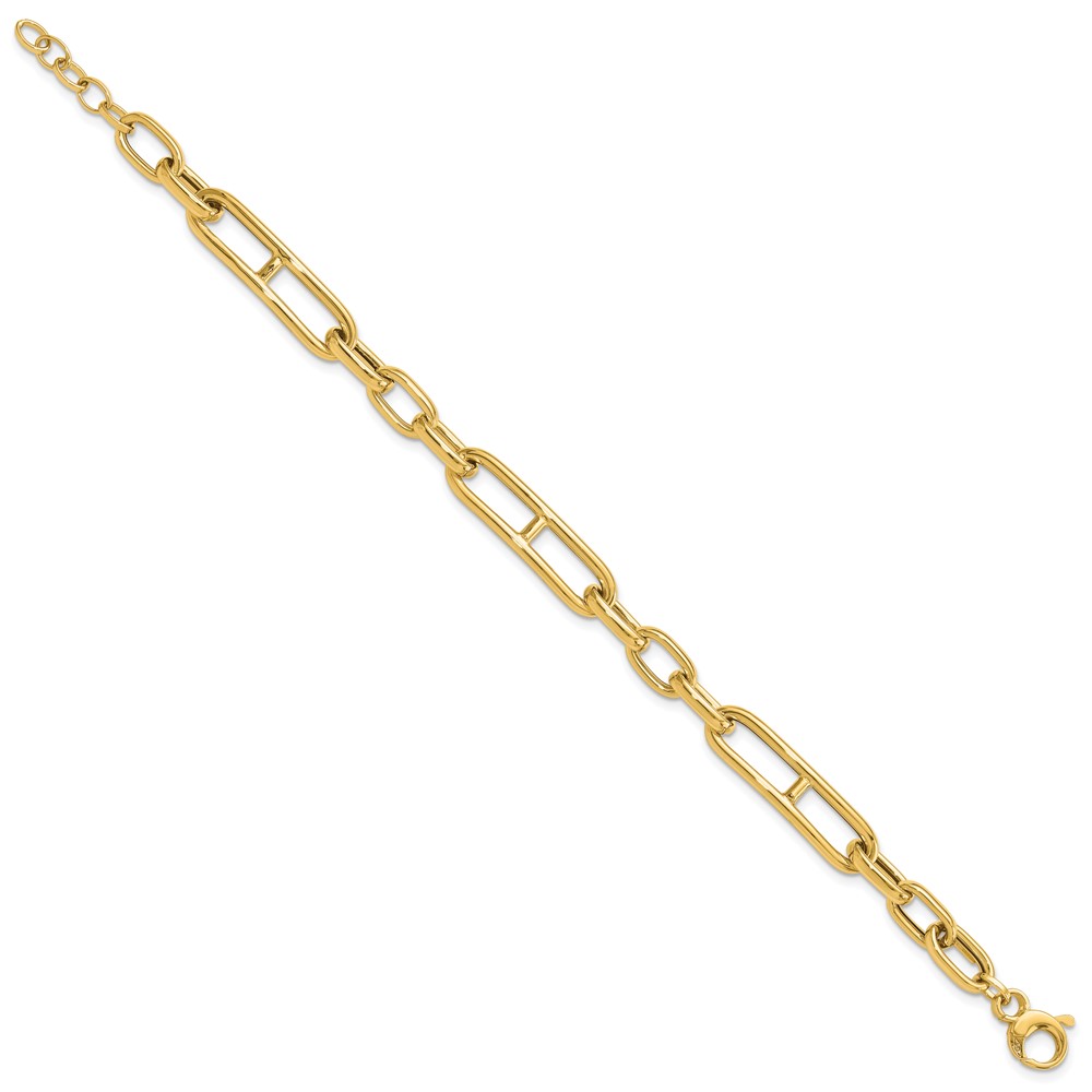 14K Polished 7.4mm Fancy Paperclip Link 7.5 inch Bracelet Plus 0.5 inch Extender
