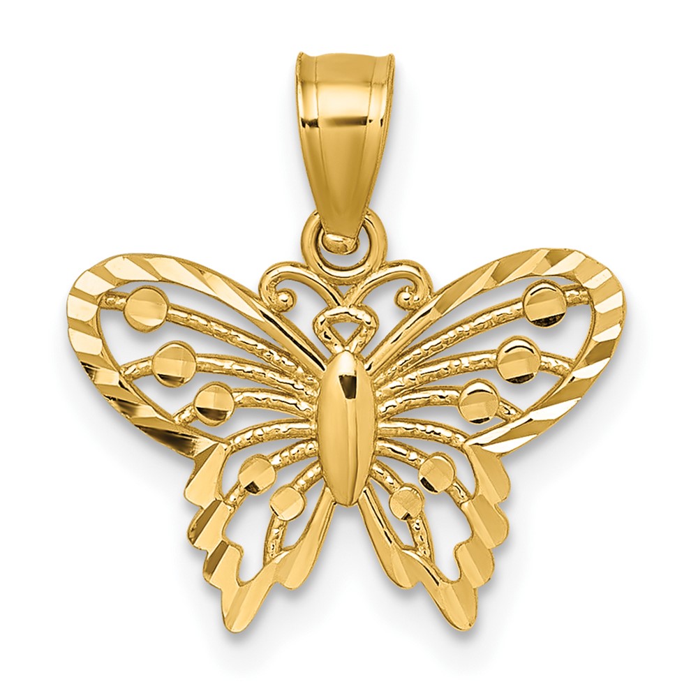 14k Polished and Diamond-cut Cut-out Butterfly Pendant