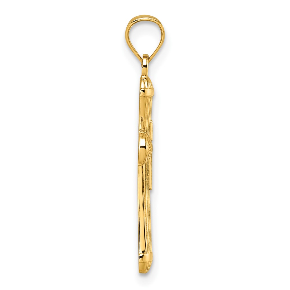 14k Polished and Diamond-cut Grooved Hollow Back Cross Pendant