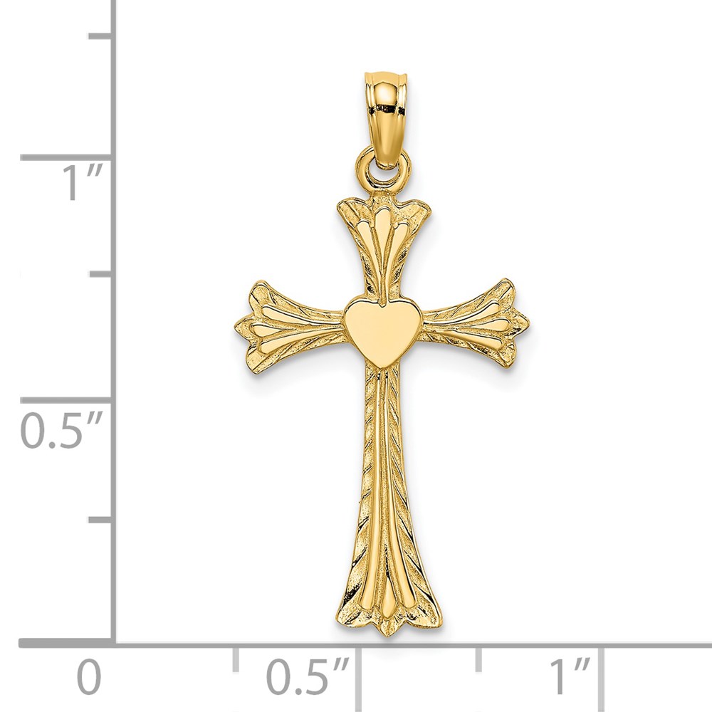 14K Polished and Engraved Cross with Heart Charm