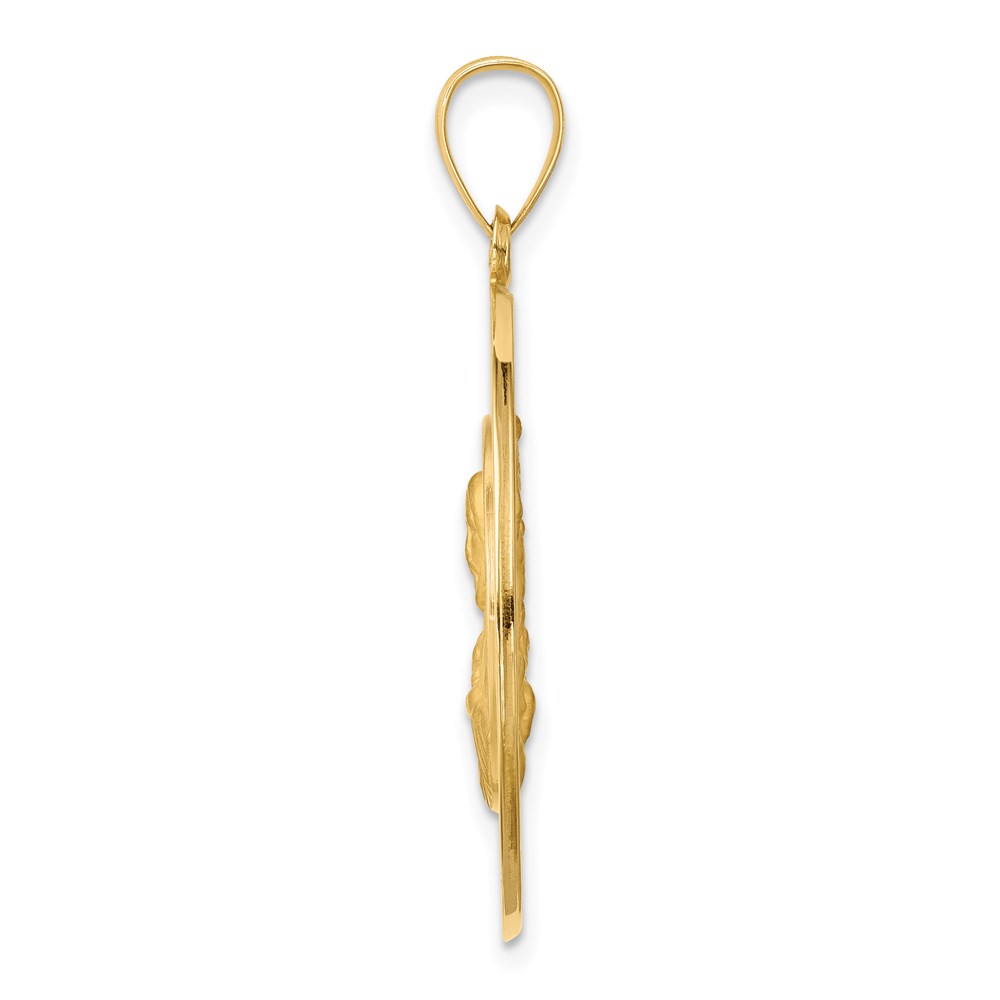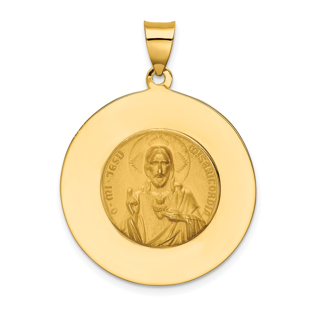 14K Polished and Satin Hollow Large Queen Of The Holy Scapular Medal Reversible Round Pendant