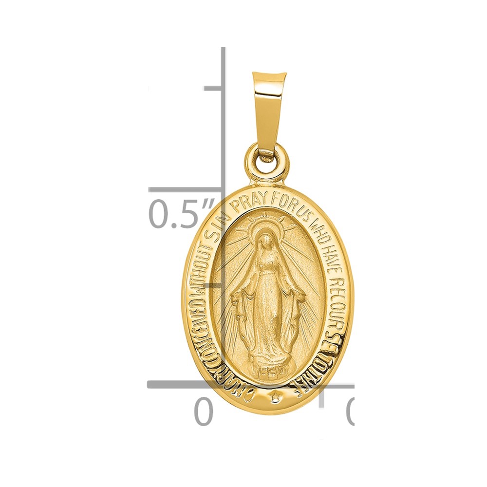 14k Polished and Satin Hollow Miraculous Medal Oval Pendant