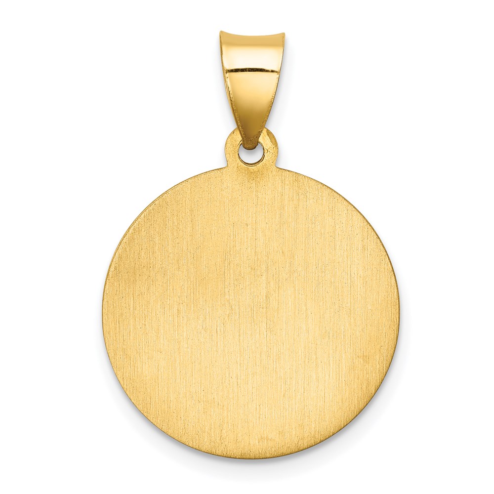 14k Polished and Satin Hollow St Florian Medal Round Pendant