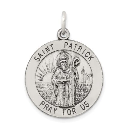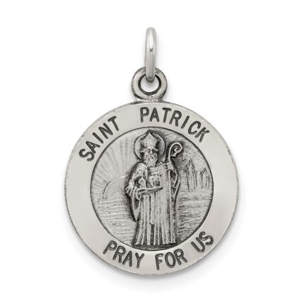 14k Polished and Satin Hollow St Patrick Medal Round Pendant