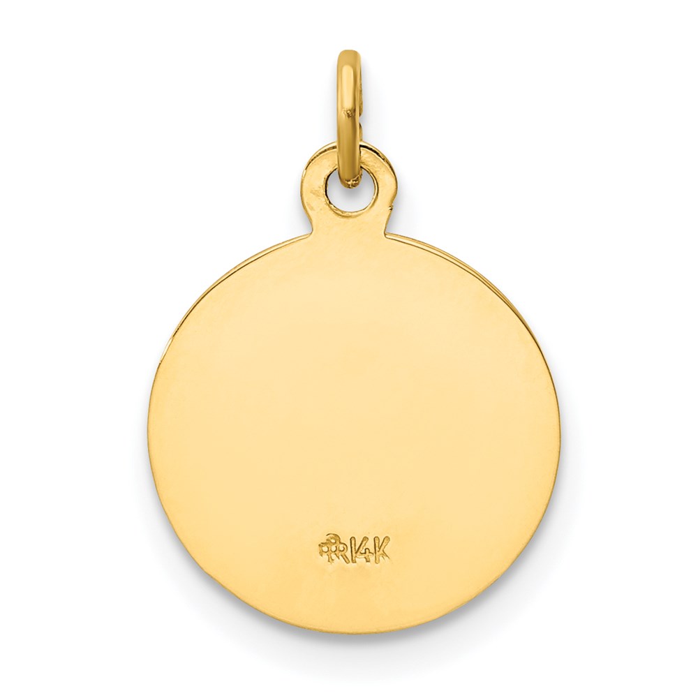 14K Polished and Satin Solid Caridad Del Cobre Medal Round Charm