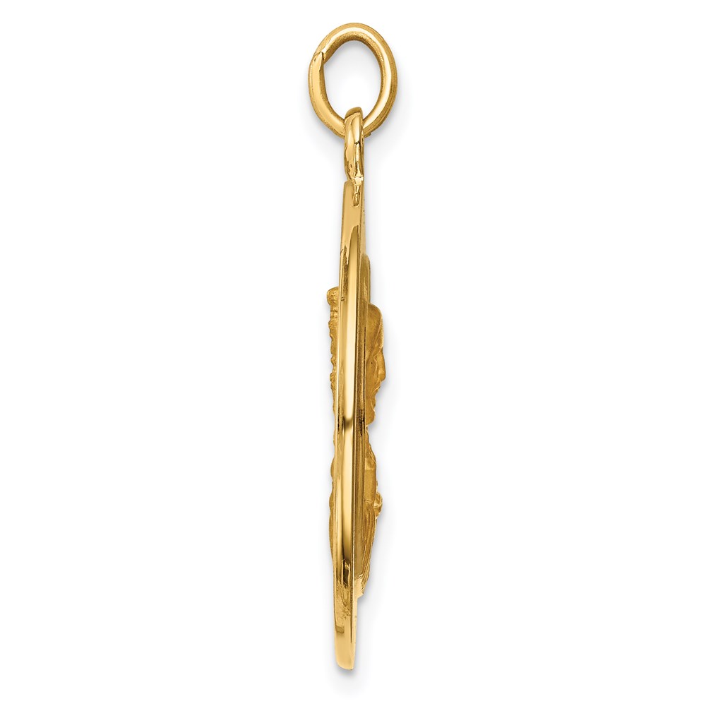 14K Polished and Satin Solid Large Queen Of The Holy Scapular Medal Reversible Round Pendant