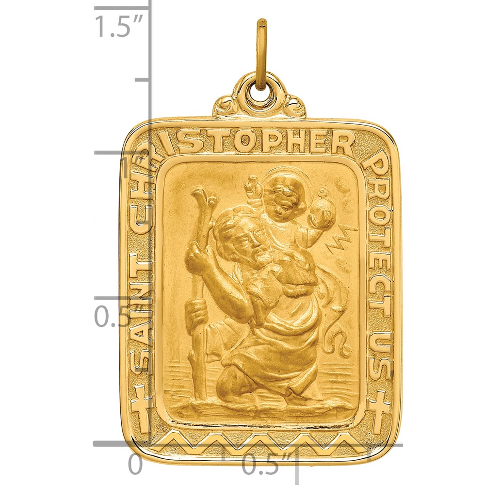 14k Polished and Satin Solid Large Rectangle St. Christopher Medal Pendant