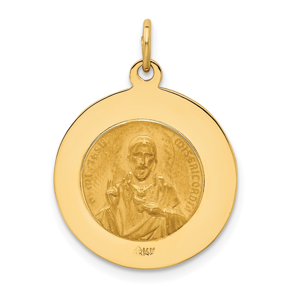 14K Polished and Satin Solid Queen Of The Holy Scapular Medal Reversible Round Pendant