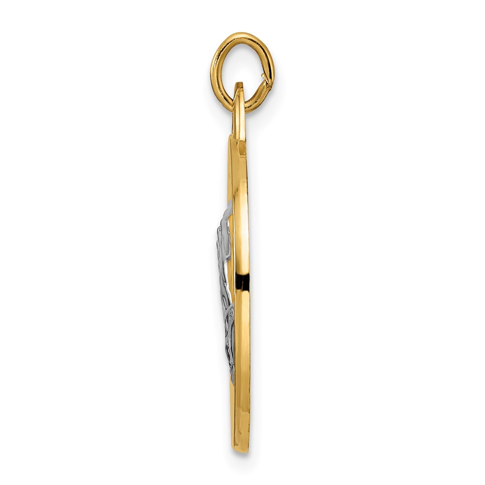 14k Polished and Satin Solid Reversible Praying Hands and Serenity Prayer Disc Pendant