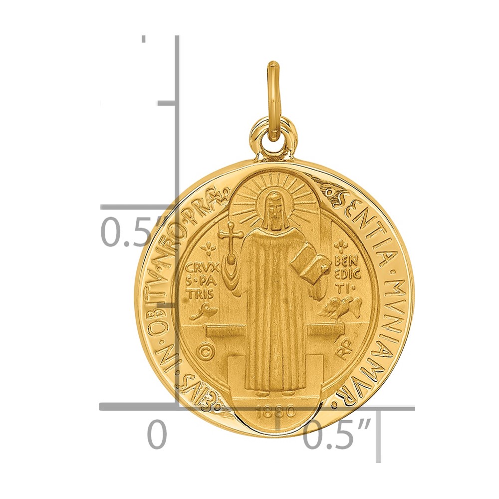 14k Polished and Satin Solid Round Reversible St. Benedict Medal Pendant
