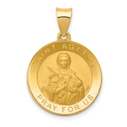14K Polished and Satin St. Cecilia Hollow Medal Pendant