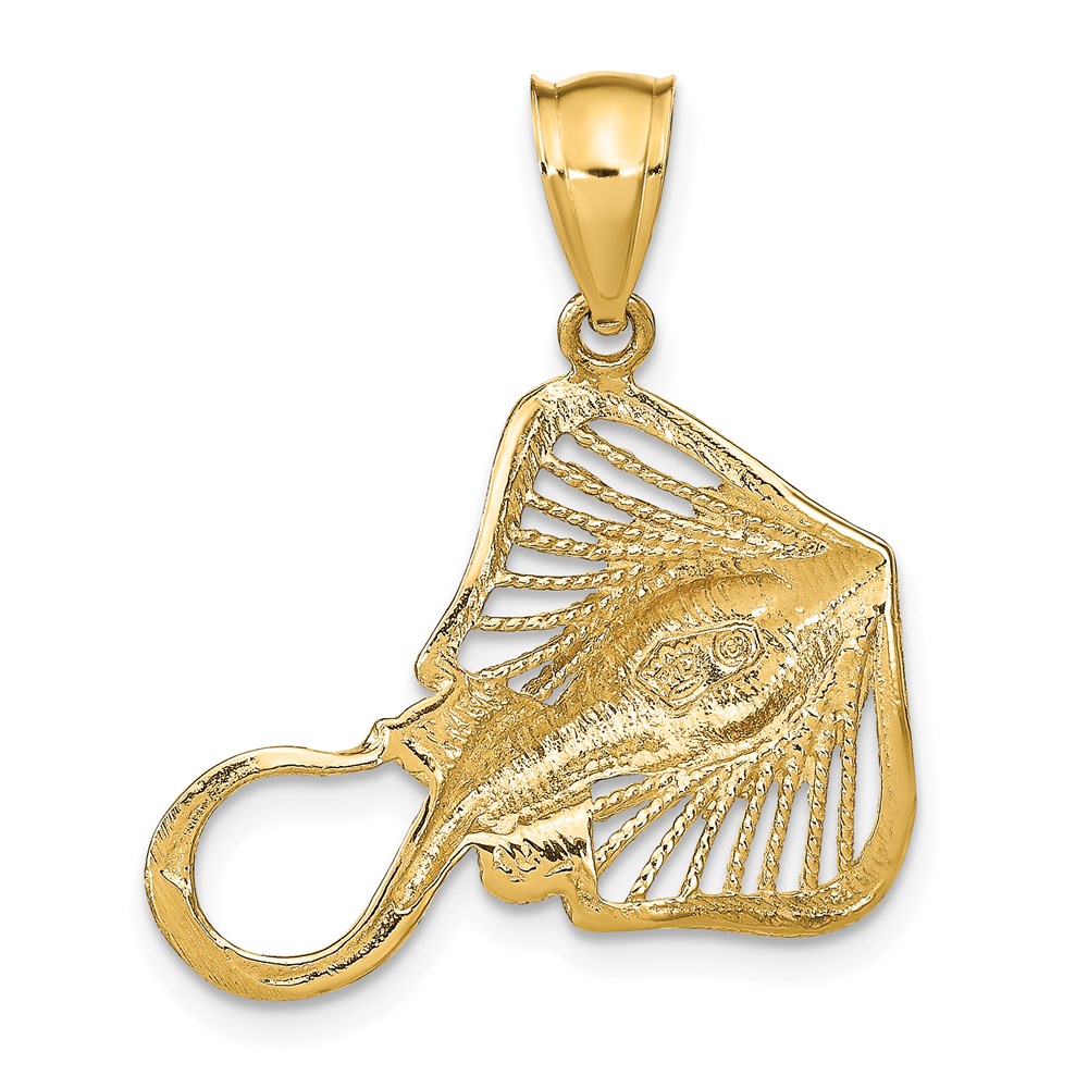 14K Polished and Textured Accent Stingray Charm
