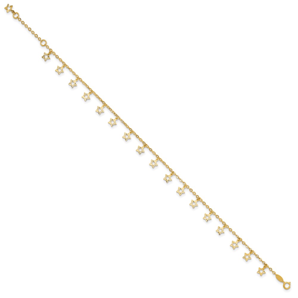 10k Polished Diamond-cut Star Dangles 5-Station Plus Extender – Total Anklet