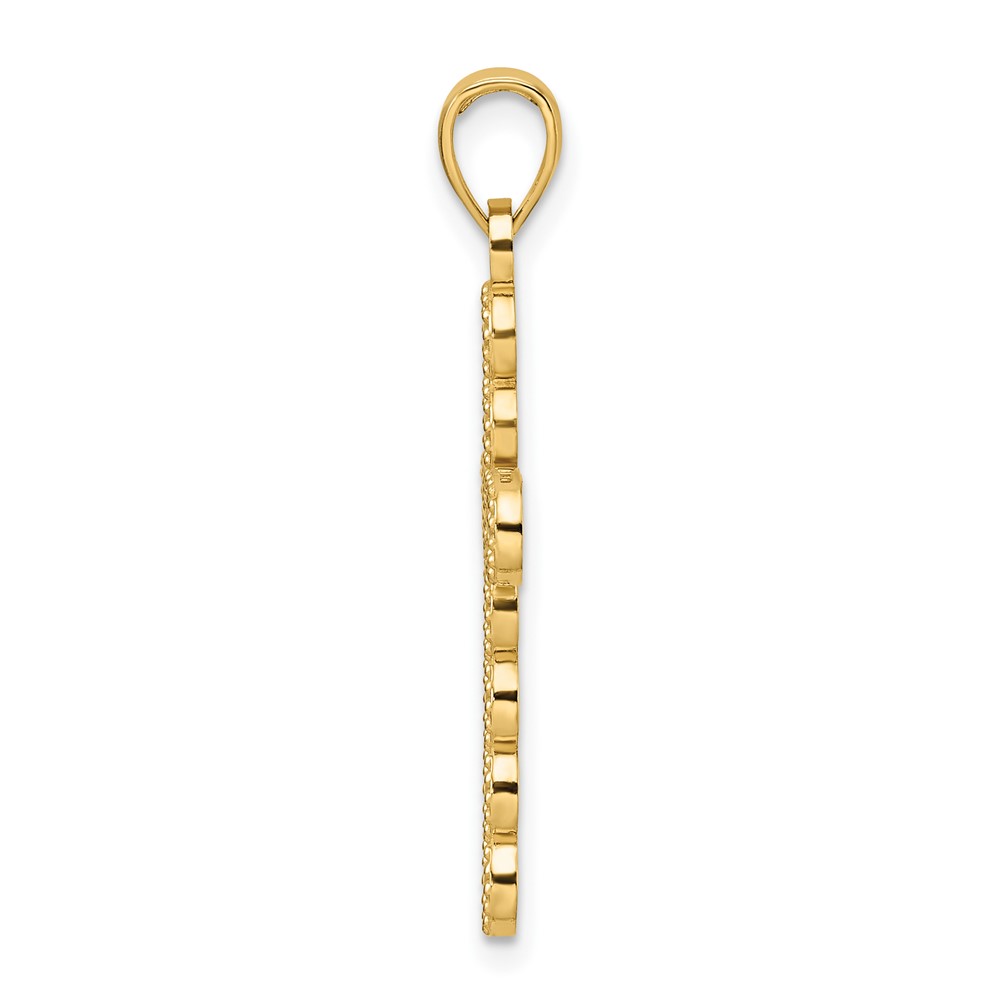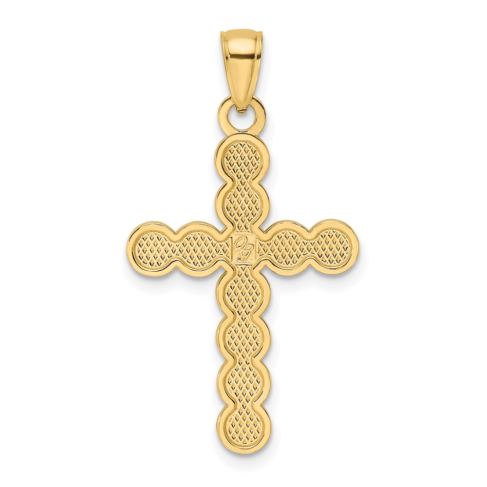 14K Polished and Beaded Design Cross Pendant