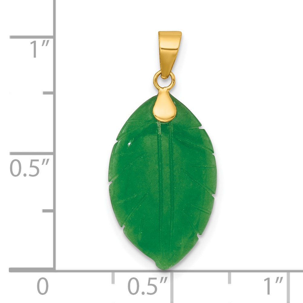 14K Polished Carved Jade Leaf Pendant
