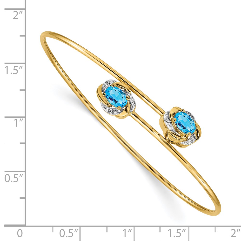 14k Polished Complete Oval Blue Topaz and .03 carat Diamond Flexible Bangle Bracelet