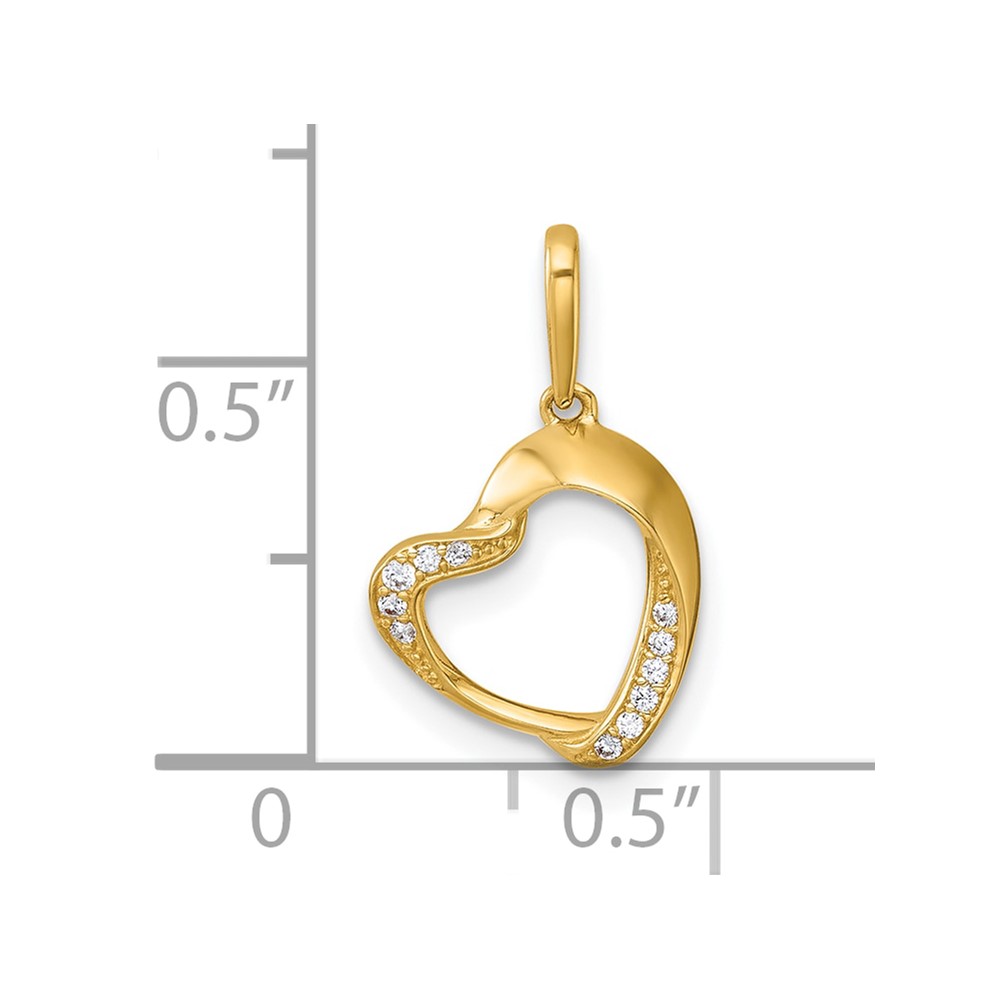 14k Polished CZ Fancy Open Heart Charm / Pendant