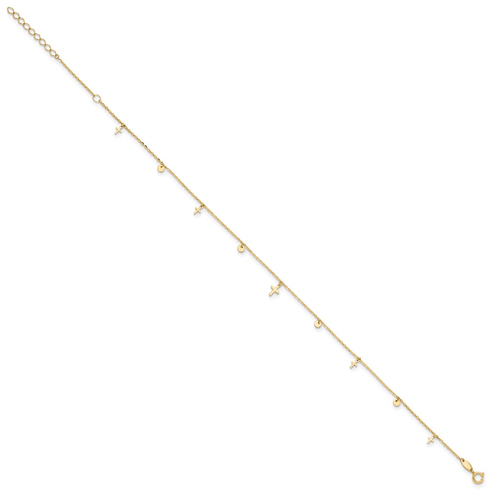 14K Polished Dangle Crosses and Circles Plus 2 in Extender – Total Anklet
