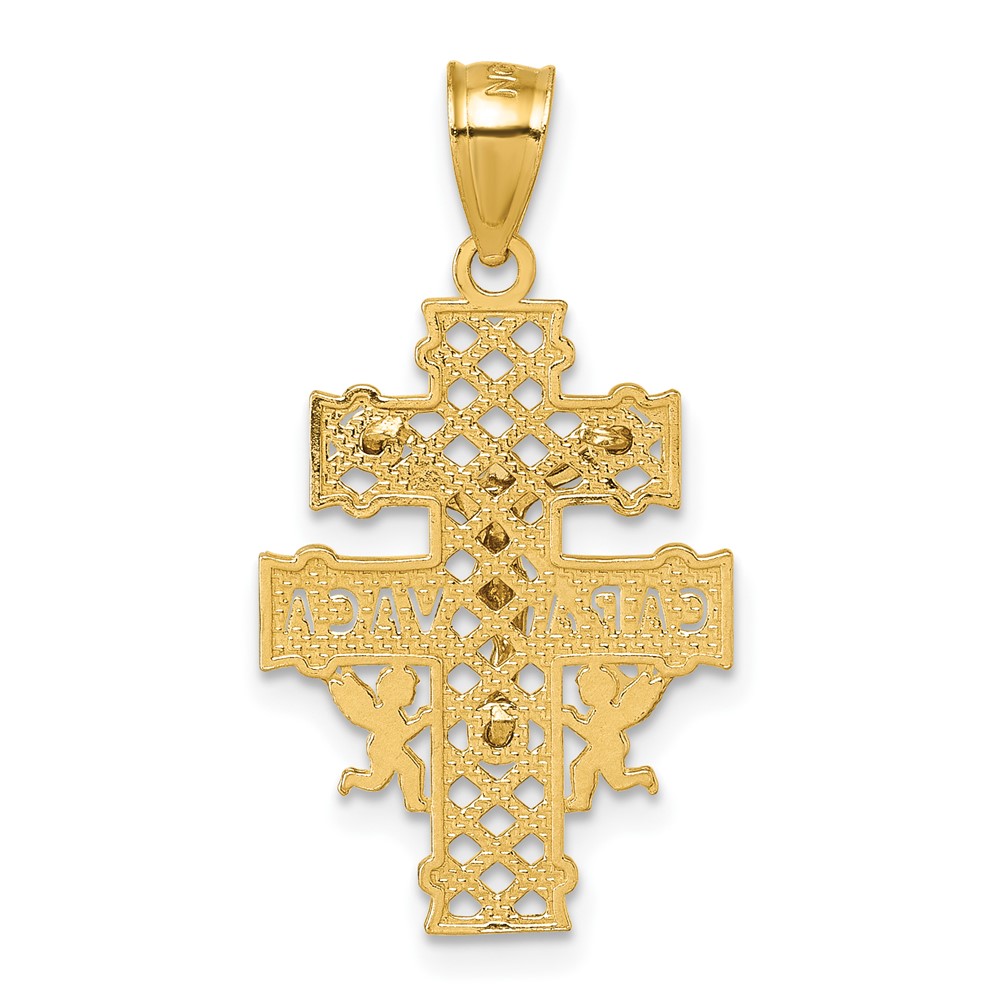 14k Polished Diamond-cut Cara Vaca Crucifix Pendant