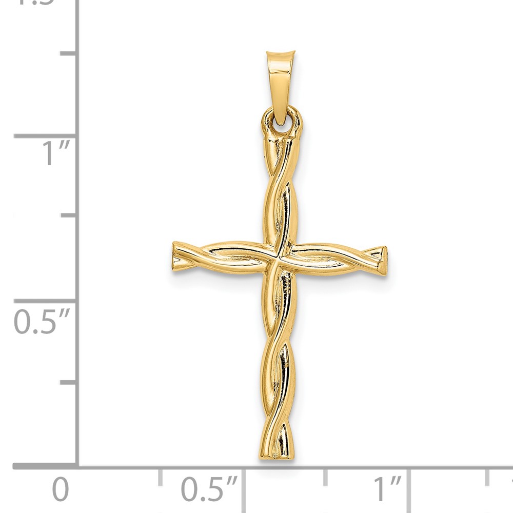 14k Polished Hollow Twisted Cross Pendant