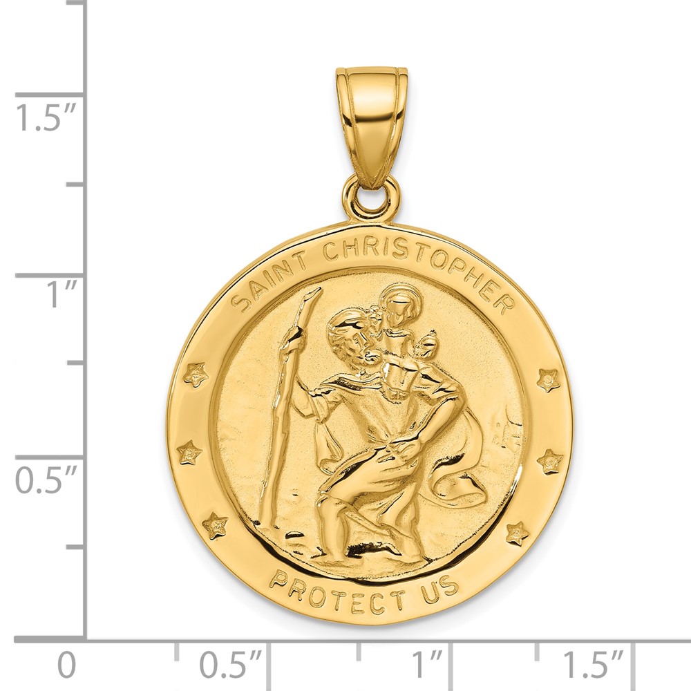 14k Polished and Satin Solid Large Saint Christopher Medal Round Pendant