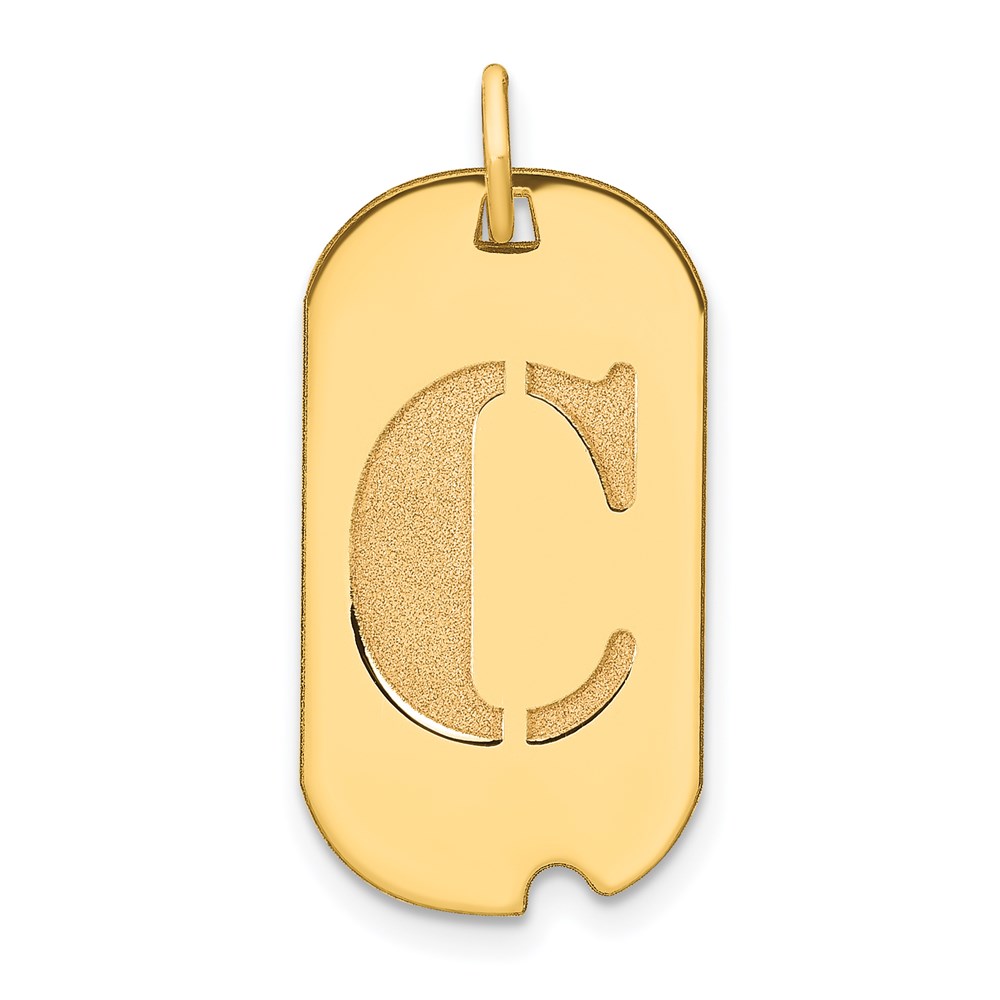 14k Polished Letter C Initial Dog Tag Pendant