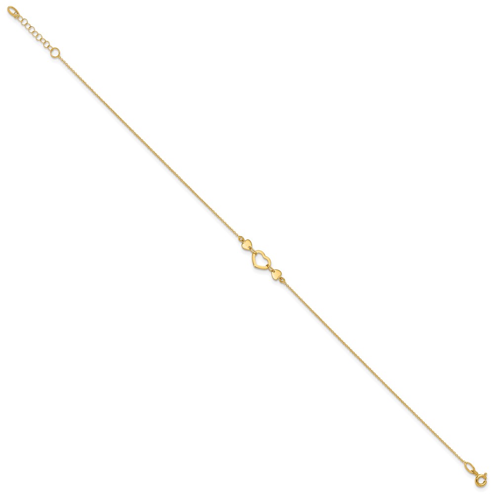 14K Two-tone Polished Open Hearts 5-Station Plus Extender – Total Anklet