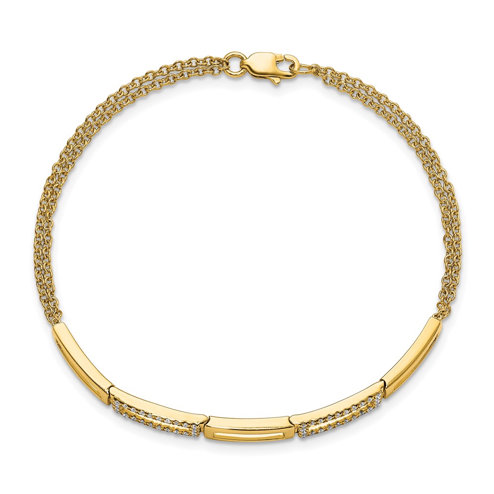 14k Polished Rectangle Link Complete 1/4 carat Diamond Double Strand 7 inch Bracelet