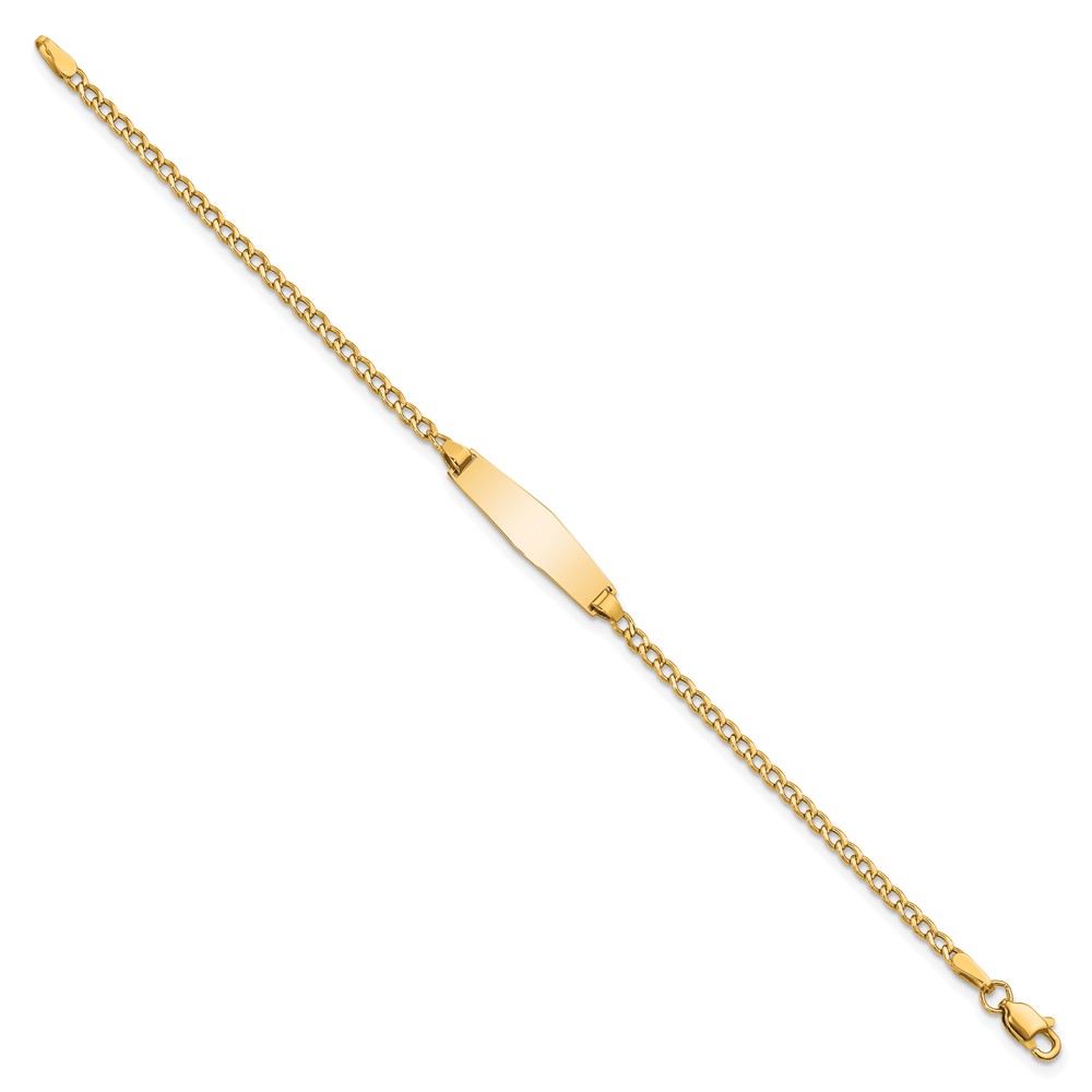 14k Polished Semi-Solid Chain/Solid Plate Cuban Link Soft Diamond Shape 19.5×5.5mm Plate 7 inch ID Bracelet