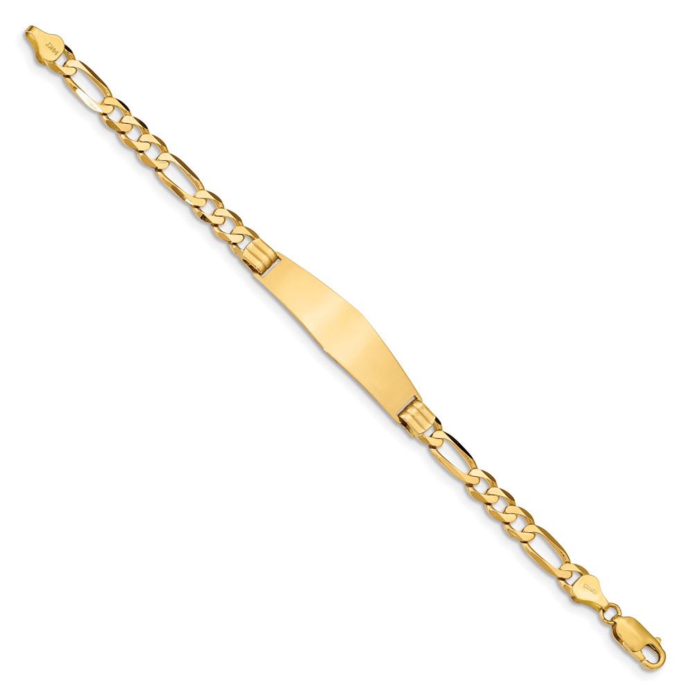 14k Polished Solid Chain/Solid Plate Figaro Link Soft Diamond Shape 37x10mm Plate 8 inch ID Bracelet