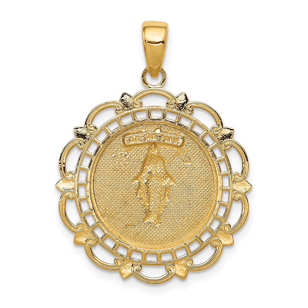 14K Polished Solid Large Miraculous Medal With Scallop Frame Round Pendant