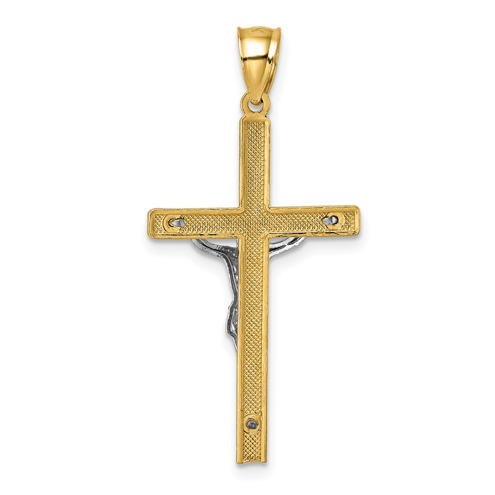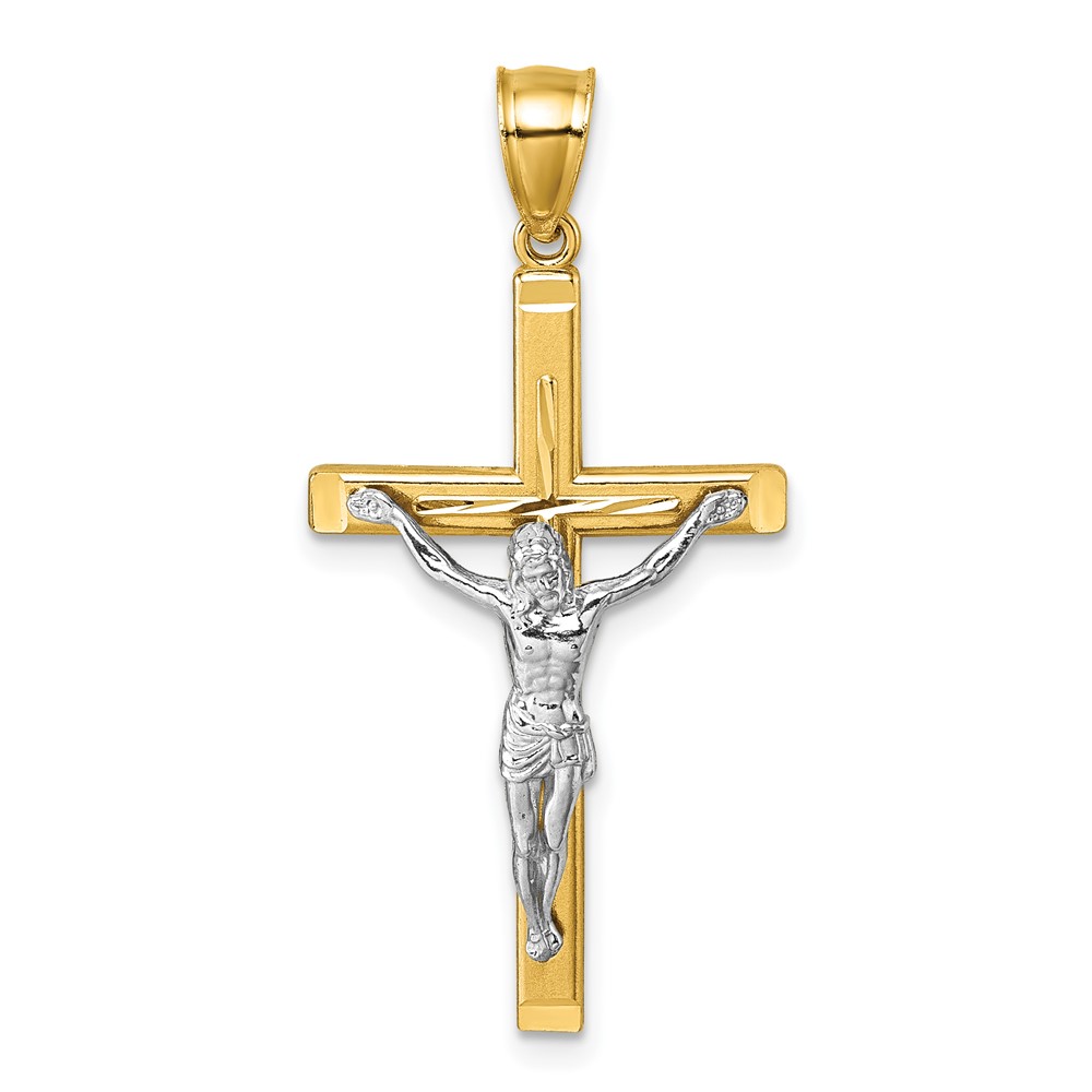 14k Polished Two-tone Diamond-cut Crucifix Pendant