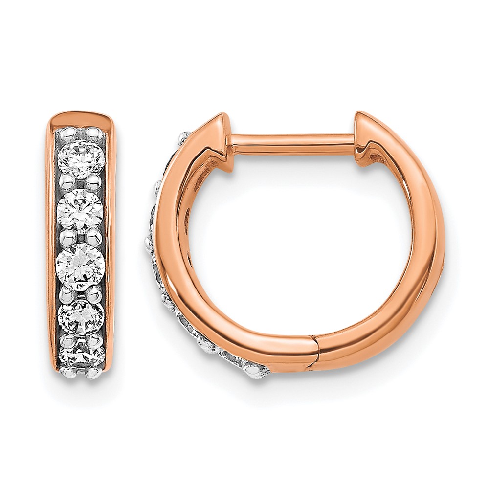 14k Rose Gold Diamond Hinged Hoop Earrings