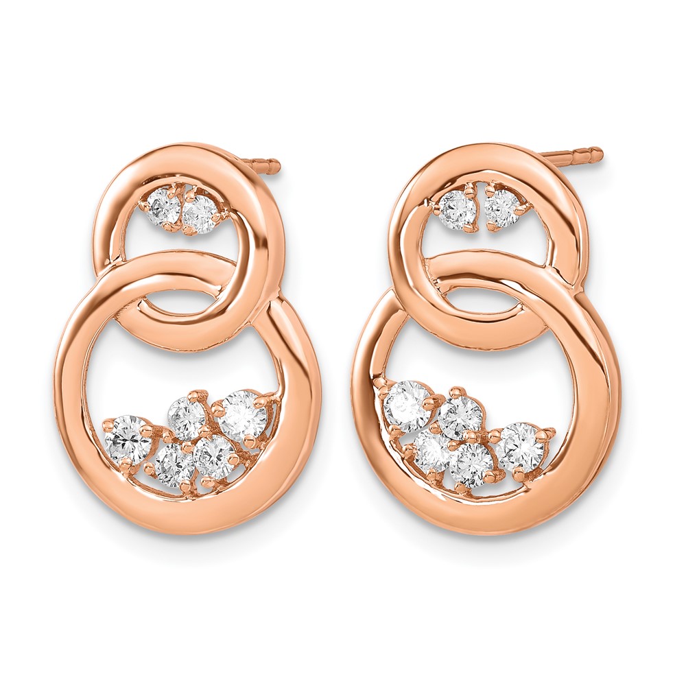 14k Rose Gold Polished 1/2 carat Diamond Double Circle Post Earrings